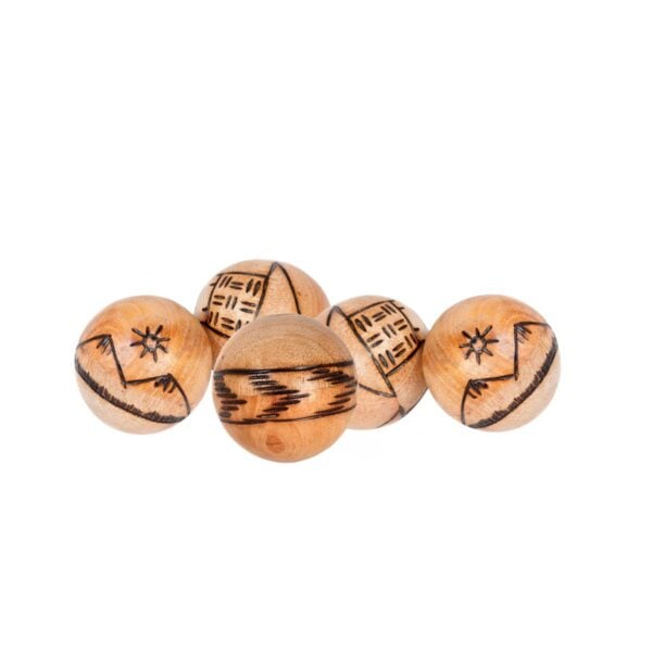 The ‘Jingle Ball’ is a hollow wooden ball containing two tiny steel bells that make a musical jingling sound when shaken or rolled about.